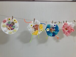 さて、ひまわりきっずでの10月の製作はハロウィンの食いしん坊モンスターです👻